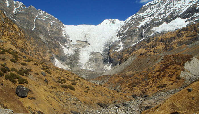 The Khatling trek is truly a remarkable trek which is unknown to many. The prime source of the trek is the Khatling Glacier, a source for river Bhilangana and if you have heard of the Bhilangana valley, then you must know what a beautiful destination that is. You will be highly greeted with a line of snow-clad mountains and glaciers for almost the entirety of the trek. You do come across a few meadows which quickly fade away into glacial debris that keeps your motivation up and running.